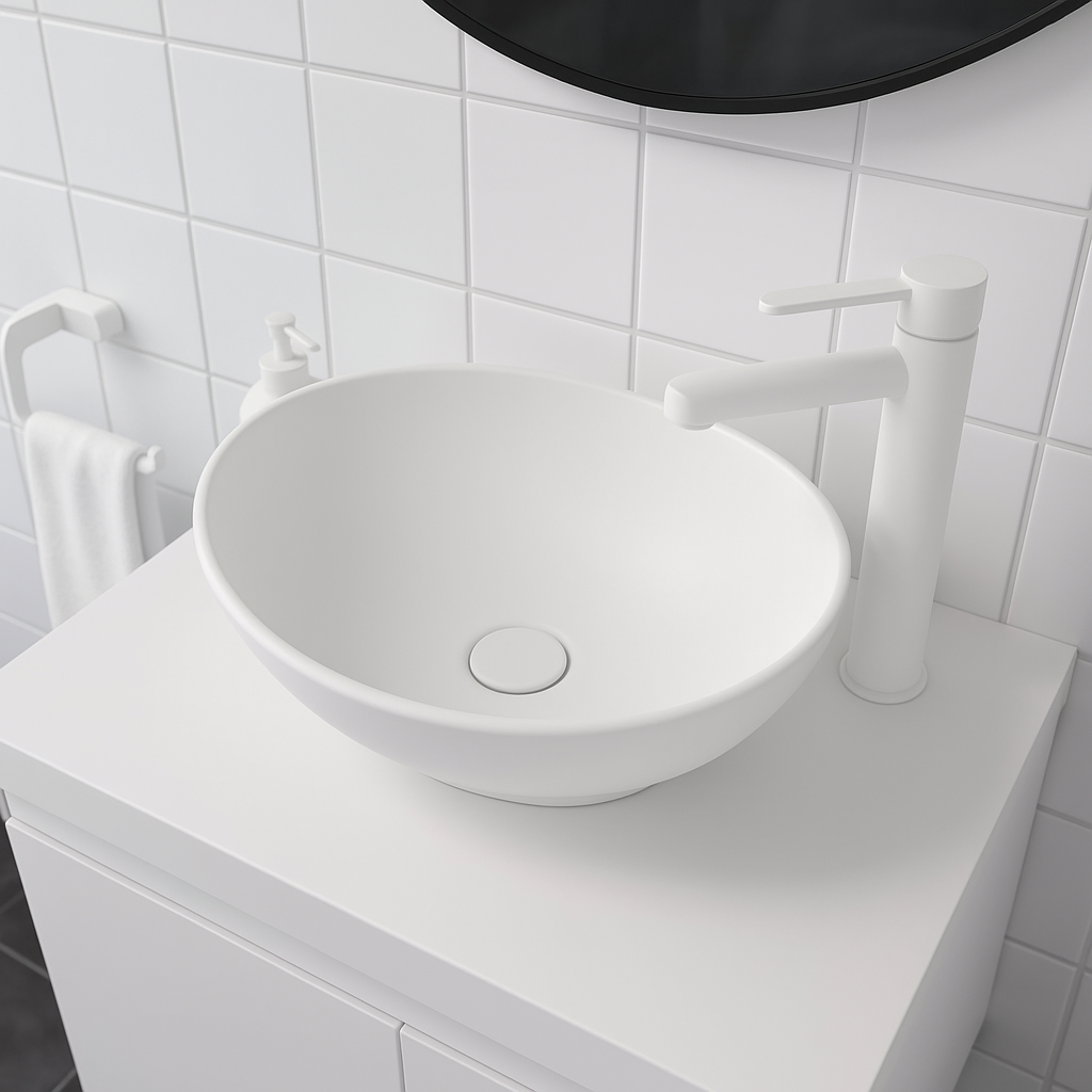 AquaVik Washbasin Sjön Oval Ceramic Matt White 40x33x14.5 cm