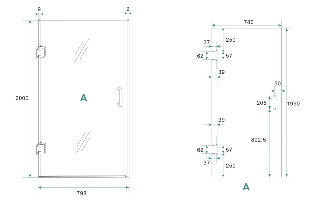Less niche door left 800 x 2000 x 8 mm nano mirror smoke to clear glass/matte black