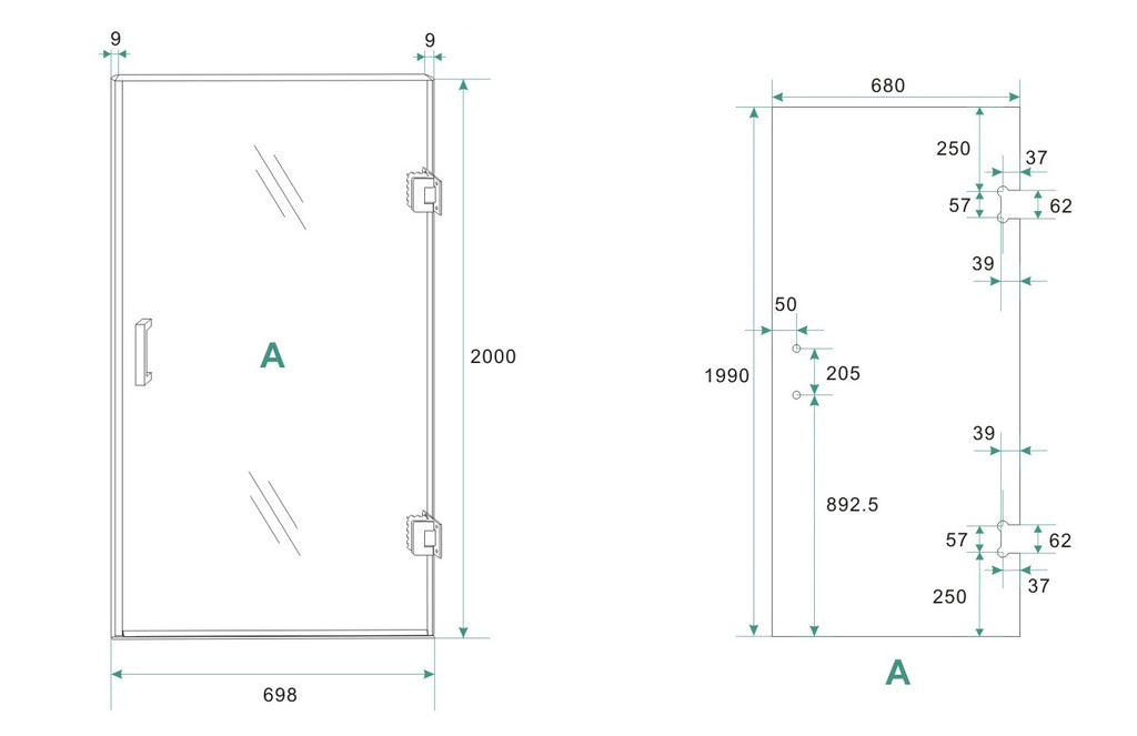 Less niche door right 700 x 2000 x 8 mm nano mirror smoke to clear glass/brushed steel