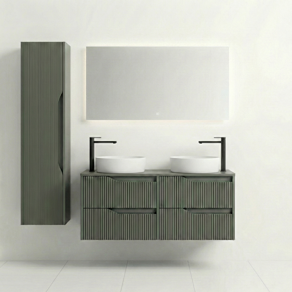 bm Soho 120 vert 2x 2 tiroirs+plan de travail+2xvasque blanc mat