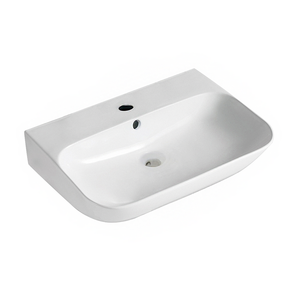 Le lavabo a une forme rectangulaire avec des coins joliment arrondis. La céramique brillante résiste à quelques coups et est facile à nettoyer.