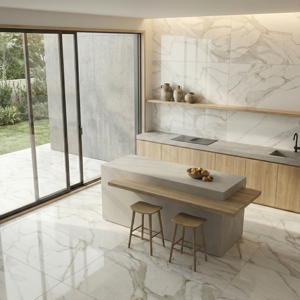 Vloertegel Calacatta Jade Wit 80x160 cm Rechthoek – Hoogglans Gerectificeerd – Marmerlook met Grijze Adering