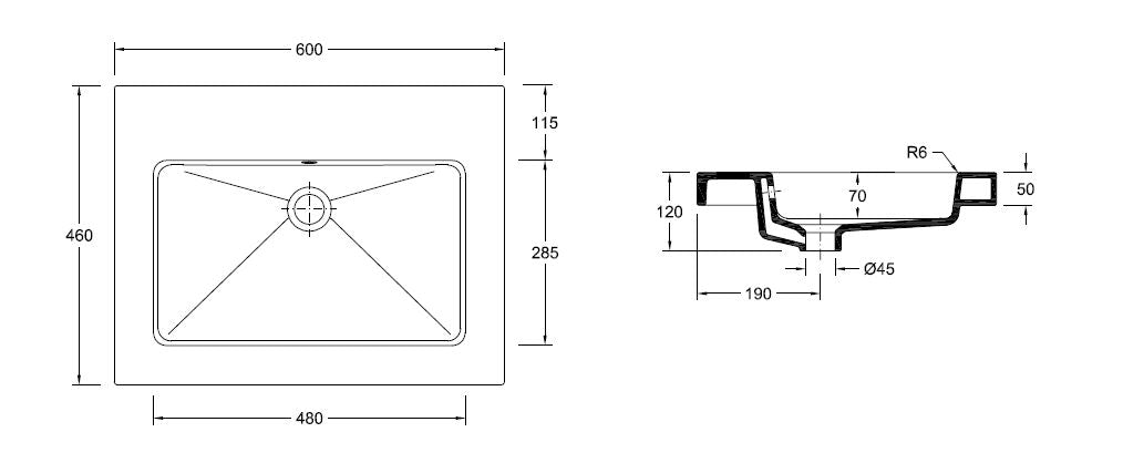 Kera lavabo simple sans trou pour robinetterie 60x46x5 cm céramique blanc brillant