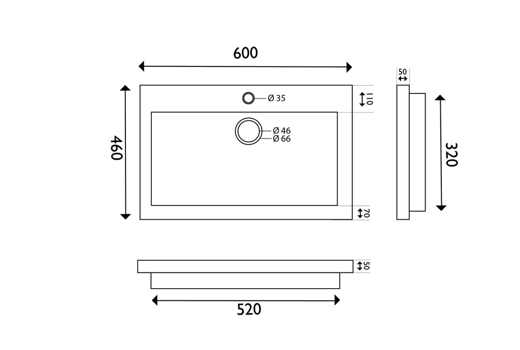 Lavabo brut simple avec 1 trou de robinetterie 60x46x5 cm pierre bleue polie