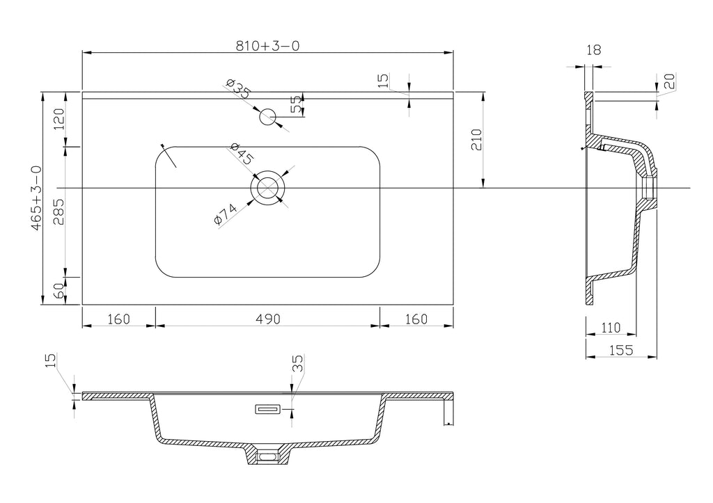 Ribbella wastafel 80 cm mat zwart