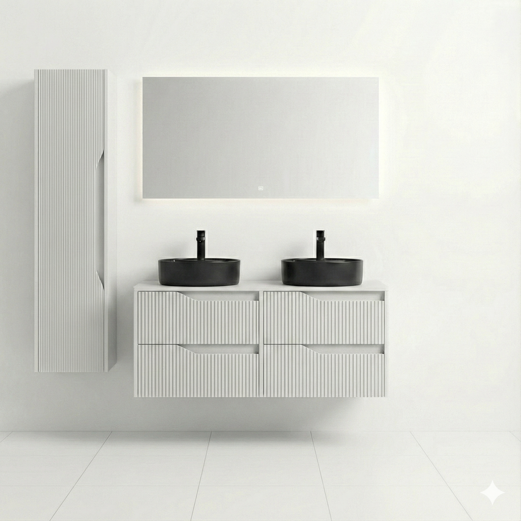 Soho Kolomkast Mat Wit – Geribbeld Design – 35x30x120 cm – Zwevend