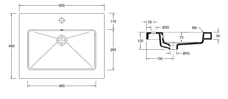 Met een breedte van 60 cm en een diepte van 46 cm biedt de Kera wastafel voldoende ruimte voor al jouw dagelijkse rituelen, terwijl hij compact genoeg blijft om in kleinere badkamers te passen. De enkele kraangat geeft je de vrijheid om een kraan te kiezen die past bij jouw persoonlijke stijl en behoeften.